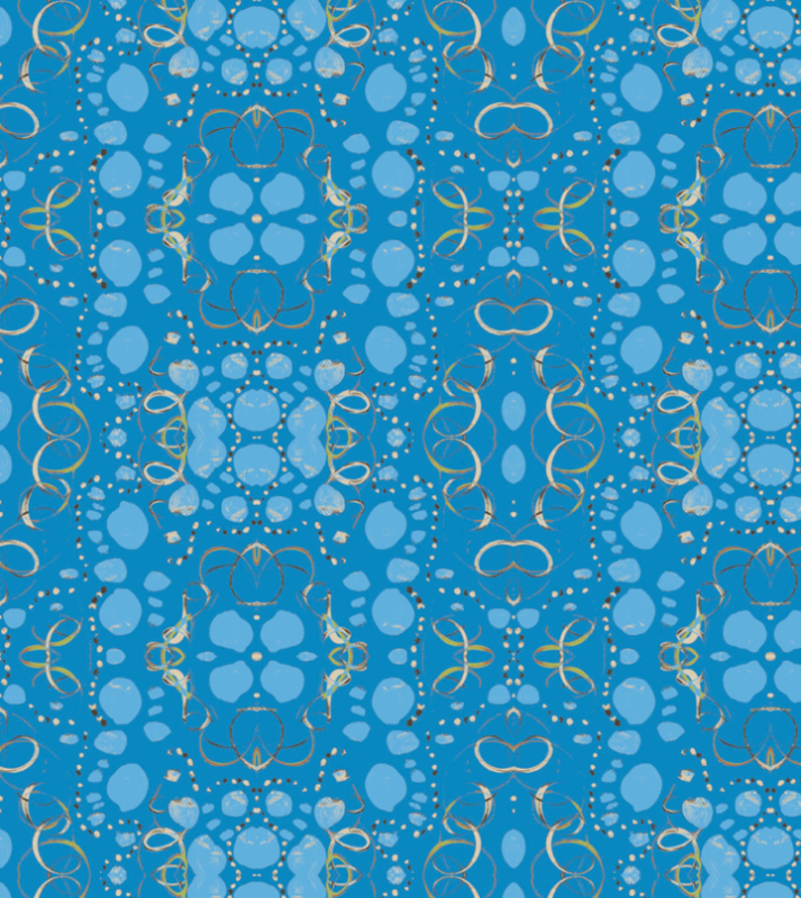 In meiner praktischen Arbeit habe ich Musterkollektionen ent- wickelt. Anregung für diese Muster war eine Befragung, die ich im Vorfeld zu verschiedenen Musikrichtungen durchgeführt habe. Entstanden sind vier ganz unterschiedliche Musterbücher, die von Musikauszügen der Genres: Klassische Instrumentalmusik, Weltmusik, Electro und Death Metal inspiriert sind. Basis für jedes Muster ist eine von mir angefertigte Malerei.